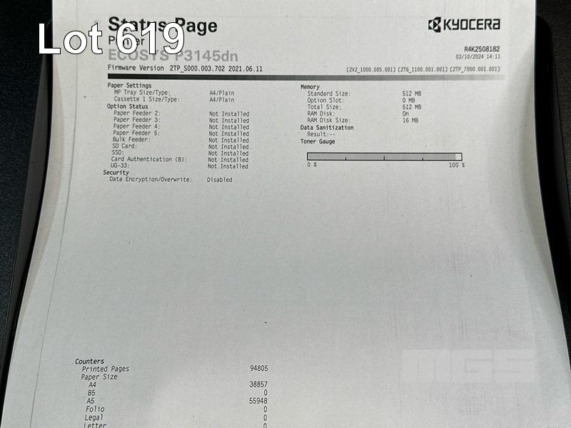 PRINTER, KYOCERA ECOSYS P3145dn LASER, USB, NETWORK, 94,805 PAGES (TEST PAGE ATTACHED)