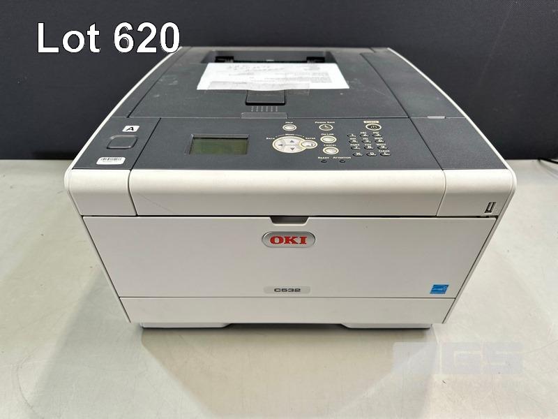 PRINTER, OKI C532 COLOUR LASER, USB, NETWORK, 18,485 COLOUR & 519 B&W PAGES (TEST PAGE ATTACHED)