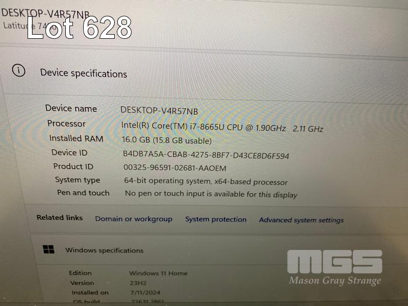 LAPTOP, DELL LATITUDE 7400, CORE i7 8665U (8TH GEN) @ 1.9GHz, 16GB DDR4 RAM, 512GB NVMe M.2 SSD, 14" WIDESCREEN (1920x1080), INTEL UHD GRAPHICS 620, Wi-Fi, BLUETOOTH, WINDOWS 11 HOME INSTALLED (NO POWER SUPPLY) (NOTE: MINOR MARKS ON SCREEN, BATTERY NOT HOLDING CHARGE) S/N:GK9K0Z2