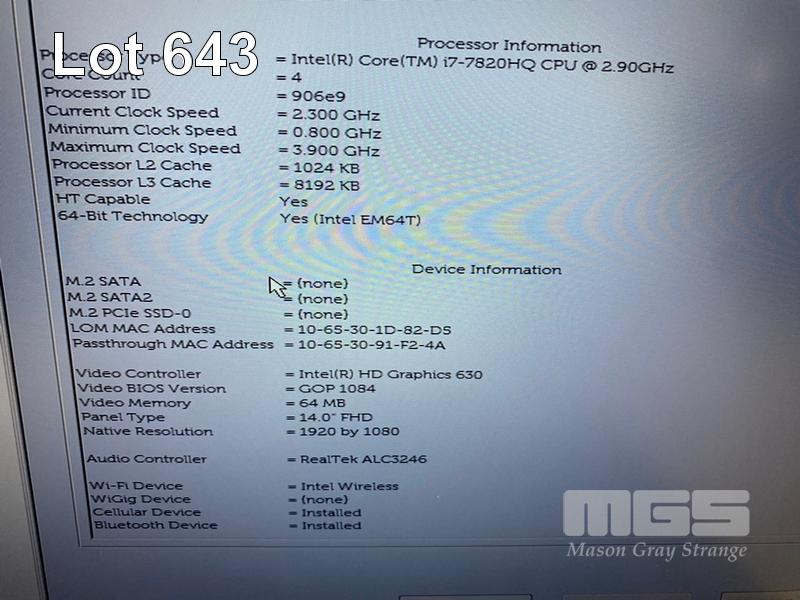 LAPTOP, DELL LATITUDE 5480, CORE i7 7820HQ (7TH GEN) @ 2.9GHz, 32GB DDR4 RAM, NO HDD, 14" WIDESCREEN & POWER SUPPLY (NOTE: MARKS & SPOTS ON SCREEN) S/N:1P5H1N2