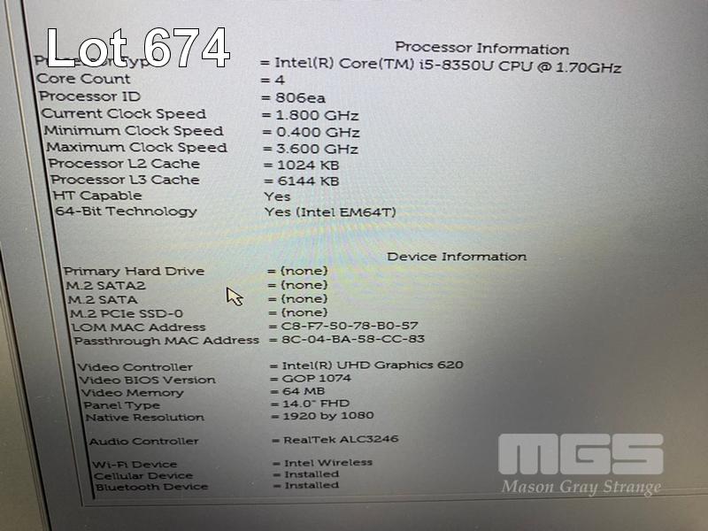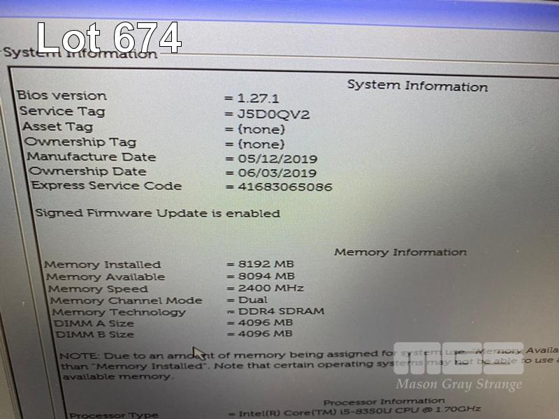 LAPTOP, DELL LATITUDE 5490, CORE i5 8350U (8TH GEN) @ 1.7GHz, 8GB DDR4 RAM, NO HDD, 14" WIDESCREEN & POWER SUPPLY S/N:J5D0QV2