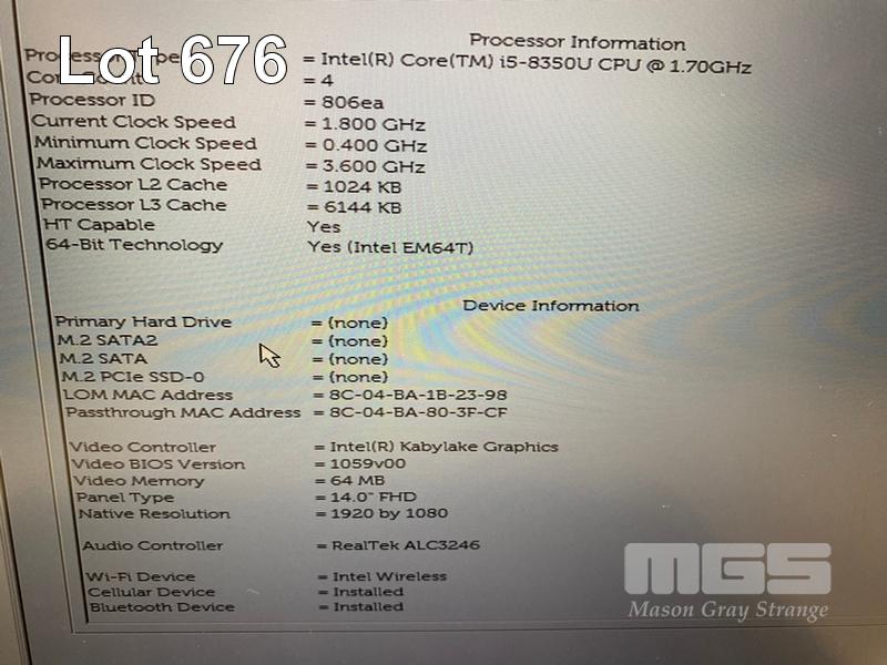 LAPTOP, DELL LATITUDE 5490, CORE i5 8350U (8TH GEN) @ 1.7GHz, 8GB DDR4 RAM, NO HDD, 14" WIDESCREEN & POWER SUPPLY S/N:DSZT3X2