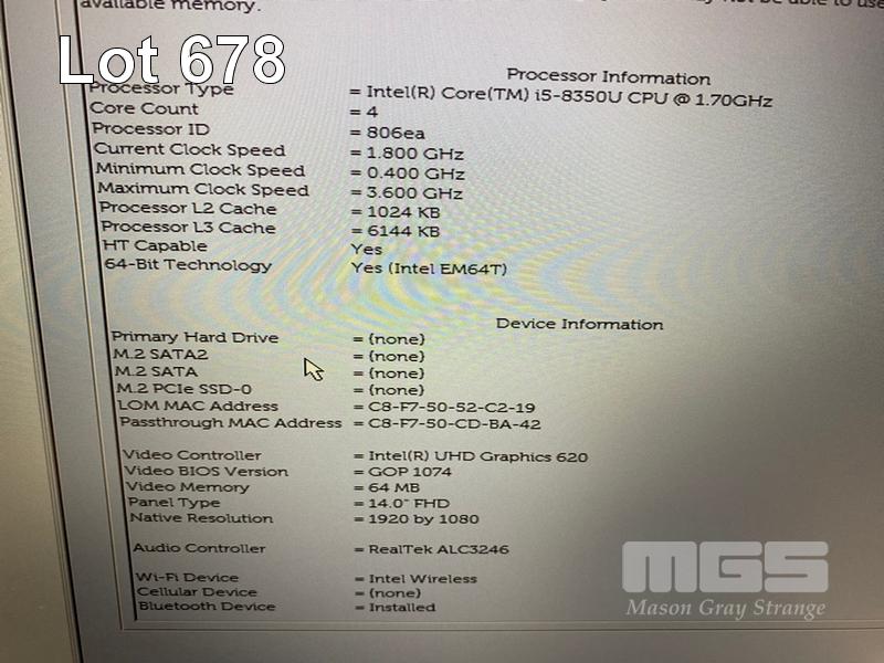 LAPTOP, DELL LATITUDE 5490, CORE i5 8350U (8TH GEN) @ 1.7GHz, 8GB DDR4 RAM, NO HDD, 14" WIDESCREEN & POWER SUPPLY S/N:C375YT2