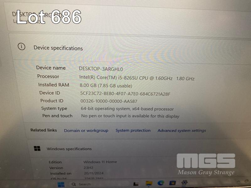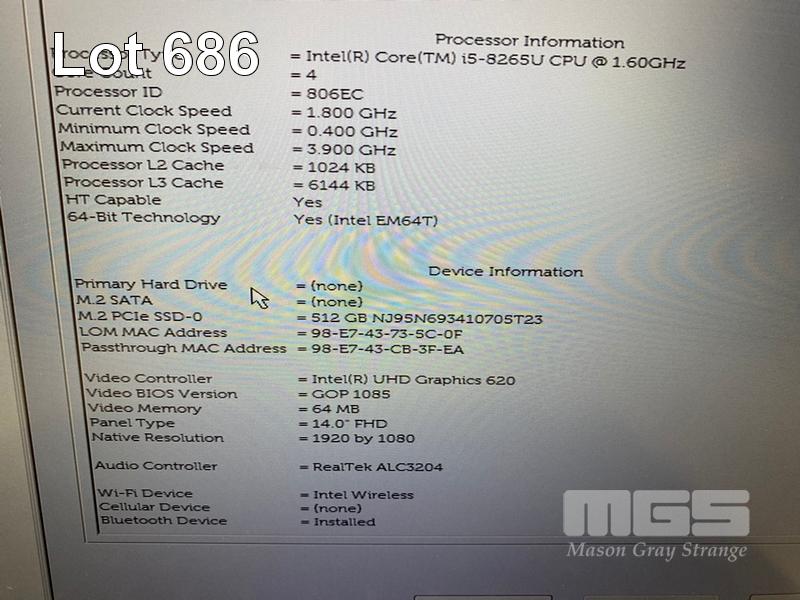 LAPTOP, DELL LATITUDE 5400, CORE i5 8265U (8TH GEN) @ 1.6GHz, 8GB DDR4 RAM, 512GB NVMe M.2 SSD, 14" WIDESCREEN (1920x1080), INTEL UHD GRAPHICS 620, Wi-Fi, BLUETOOTH, WINDOWS 11 HOME INSTALLED (NO POWER SUPPLY) (NOTE: BATTERY NOT HOLDING CHARGE, MARKS ON SCREEN) S/N:689H1X2
