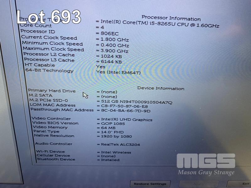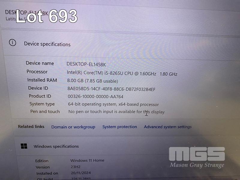 LAPTOP, DELL LATITUDE 5400, CORE i5 8265U (8TH GEN) @ 1.6GHz, 8GB DDR4 RAM, 512GB NVMe M.2 SSD, 14" WIDESCREEN (1920x1080), INTEL UHD GRAPHICS 620, Wi-Fi, BLUETOOTH, WINDOWS 11 HOME INSTALLED (NO POWER SUPPLY) (NOTE: MISSING "S" KEY, NETWORK PORT COVER LOOSE, MARKS ON SCREEN) S/N:1R983X2
