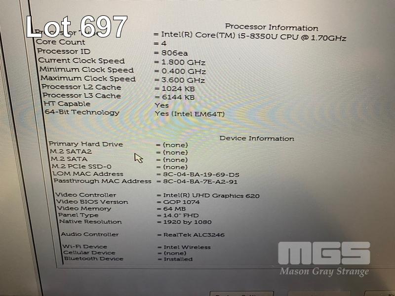 LAPTOP, DELL LATITUDE 5490, CORE i5 8350U (8TH GEN) @ 1.7GHz, 8GB DDR4 RAM, NO HDD, 14" WIDESCREEN & POWER SUPPLY (NOTE: MARKS ON SCREEN) S/N:15TP3X2