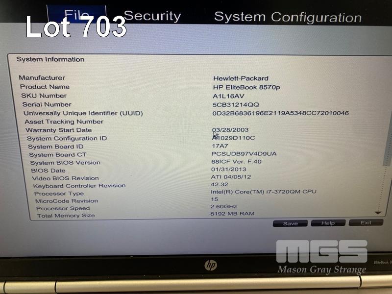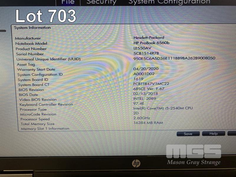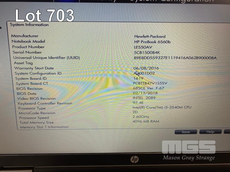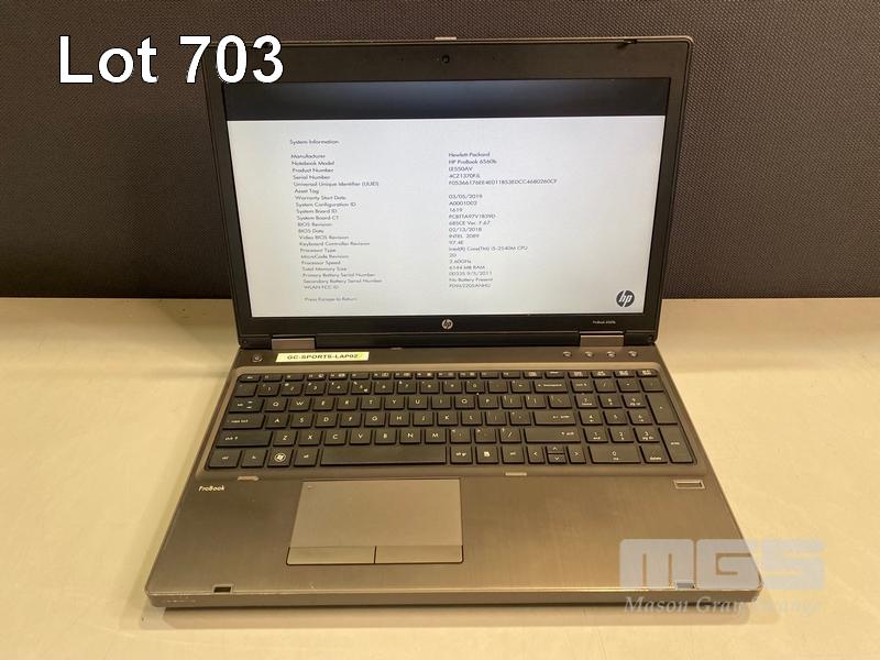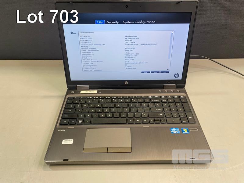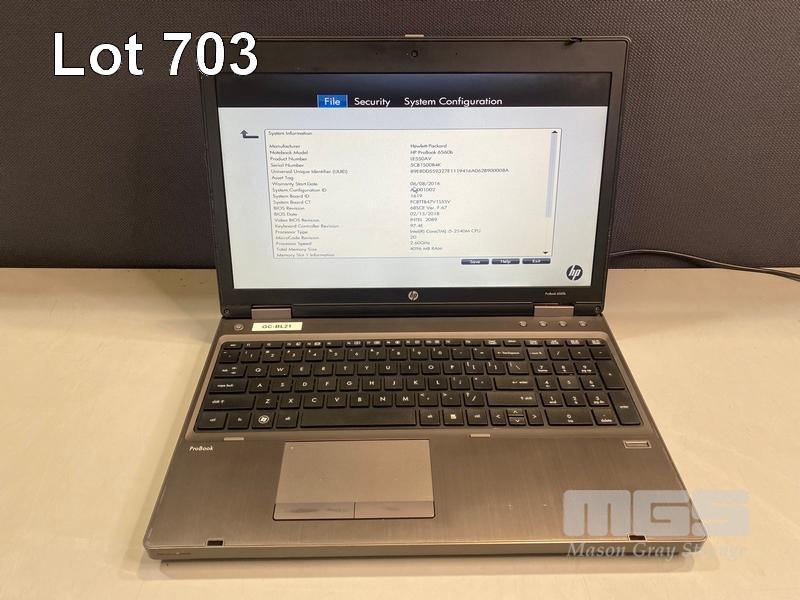 5 x LAPTOPS INC. - HP PROBOOK 6560b, CORE i5 2540M @ 2.6GHz, 16GB RAM, 240GB SSD - HP PROBOOK 6560b, CORE i5 2540M @ 2.6GHz, 4GB RAM, 240GB SSD - HP PROBOOK 6560b, CORE i5 2540M @ 2.6GHz, 6GB RAM, 250GB SATA HDD - HP PROBOOK 6560b, CORE i5 2540M @ 2.6GHz, 8GB RAM, 250GB SATA HDD - HP ELITEBOOK 8570p, CORE i7 3720QM @ 2.6GHz, 8GB RAM, 250GB SATA HDD WITH POWER SUPPLIES S/N:5CB1514R7B, 5CB1500B4K, 4CZ1370FJL, 4CZ1370FKQ, 5CB31214QQ