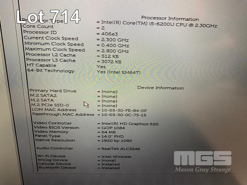 LAPTOP, DELL LATITUDE 5480, CORE i5 6200U (6TH GEN) @ 2.3GHz, 8GB DDR4 RAM, NO HDD, 14" WIDESCREEN & POWER SUPPLY (NOTE: BATTERY NOT HOLDING CHARGE, MARKS ON SCREEN) S/N:4L6VZM2