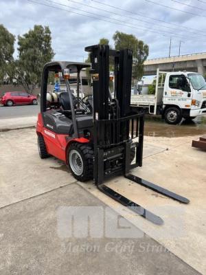 FORKLIFT, MANITOU M30G DOM: 07/2020 S/NO: MAN00000J00883911 3 TONNE 3 STAGE MAST LPG, SIDE SHIFT, SOLID TYRES HOURS: 153.3 SHOWING LIGHTS, REV BUZZER NEAR NEW CONDITION