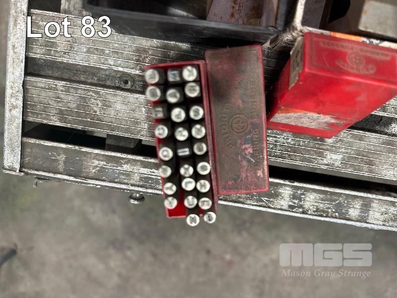 PAIR CAST IRON V/BLOCKS, 75 x 50 x 50mm & SET LETTER & NUMBER PUNCHES, 3mm