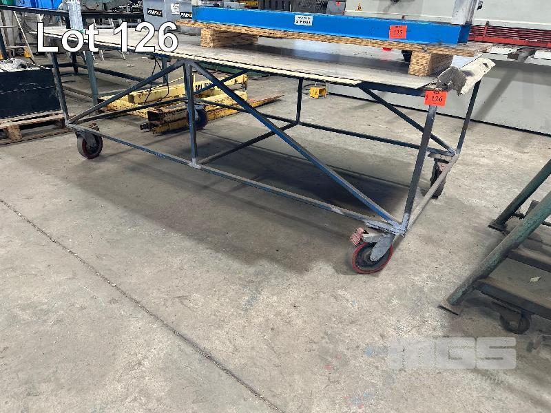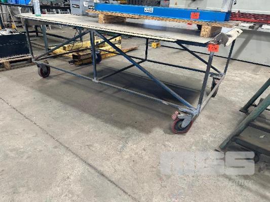 WORK TABLE, 2400 x 1200mm, STEEL FRAME, PLYWOOD TOP, MOBILE