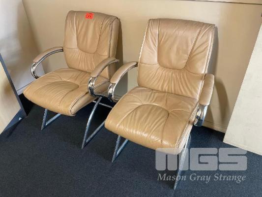 PAIR LEATHER SLINGBACK RECEPTION CHAIRS, CHROME BASE, BEIGE