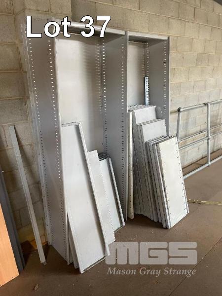 STEEL SHELVING, DEXION/BROWNBUILT, 6 x BAYS 2 GROUND FLOOR REST ON MEZZANINE INCLUDING SPARE UPRIGHTS, BACKIG & SHELVES