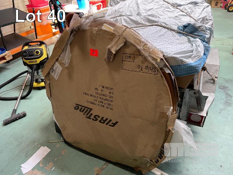 MEETING TABLE, CIRCULAR BASE, 2 TONE BEECH/STORM LAMINATE, 1200mm DIAMETER (IN BOX)