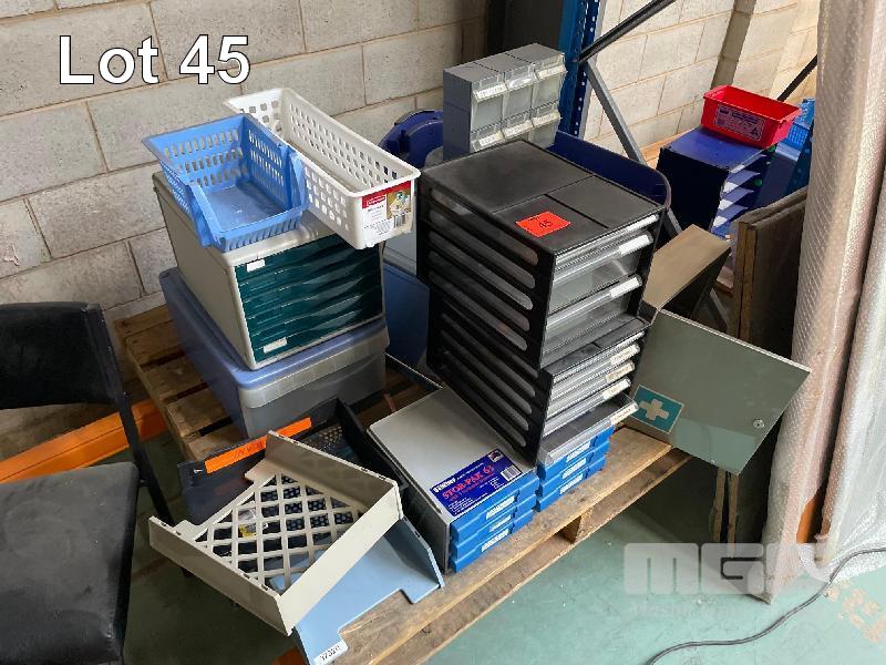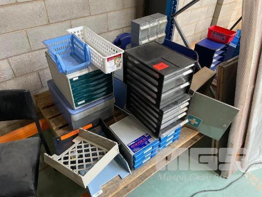 PALLET OF SLIP PAPER DRAWERS, STAINLESS STEEL CABINET, ETC