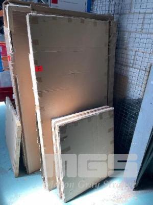 3 x DESKS, BEECH STORM LAMINATE, 1800 x 900mm, NEW, 5 x CARTONS & 2 x LOOSE SIDES