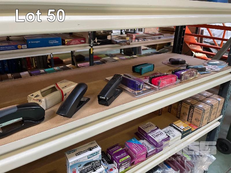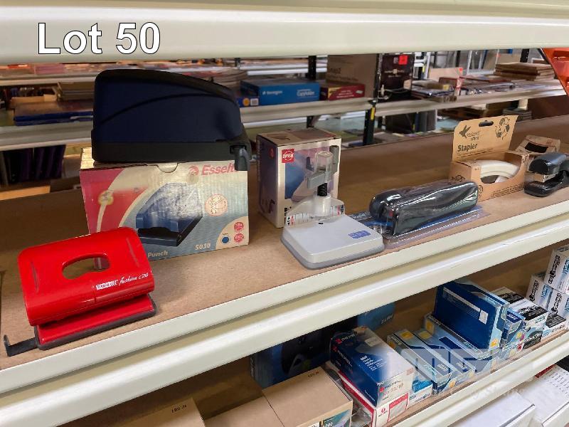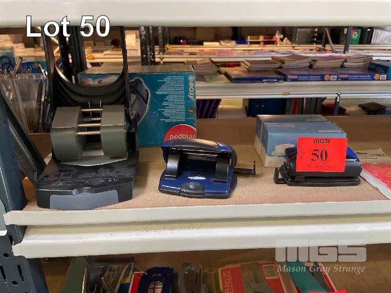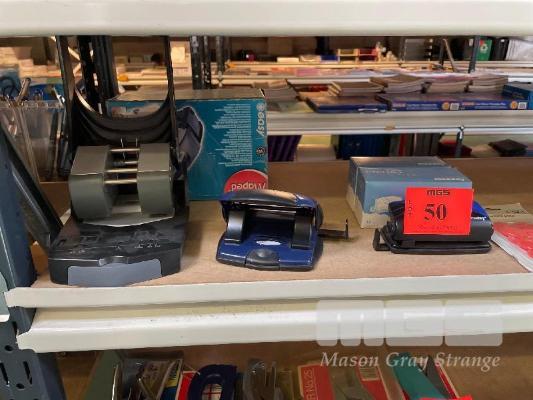 15+ HAND STAPLERS, PUNCHES, ETC 1 x SHELF
