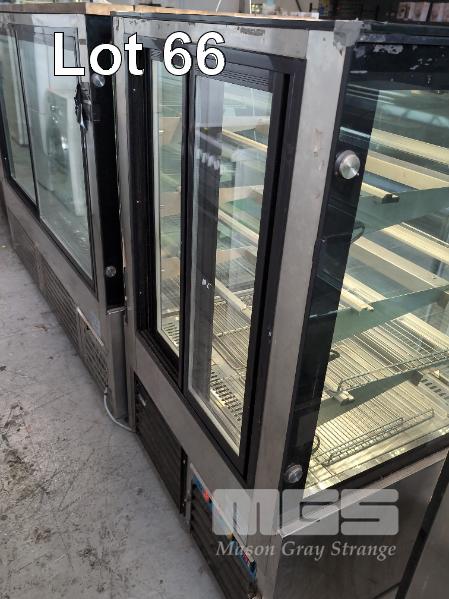RETAIL REFRIGERATED CAKE DISPLAY. 3-SHELF. F.E.D. MODEL SL830V. 910 X 730 X 1,350 MM (W D H). 240V. ** ALL FAULTS - NOT CHILLING TO TEMPERATURE **