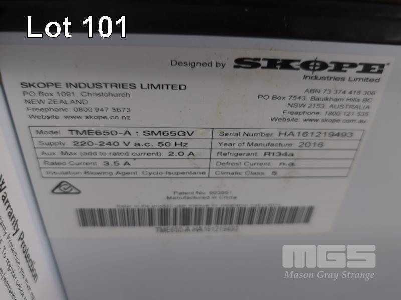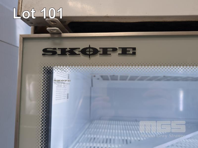 SINGLE DOOR COMMERCIAL DISPLAY FRIDGE. SKOPE MODEL TME650-A. 240V. ** ALL FAULTS - DOES NOT CHILL **