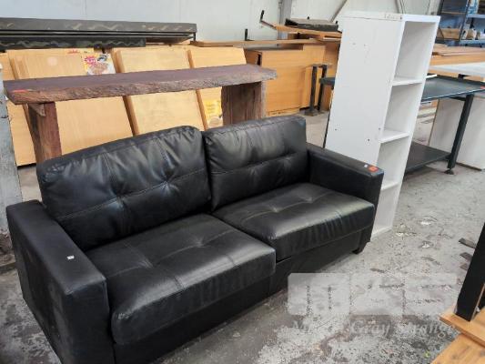 2.5 SEATER SQUARE ARM LOUNGE. BLACK LEATHER LOOK WITH 4-SHELF UNIT.