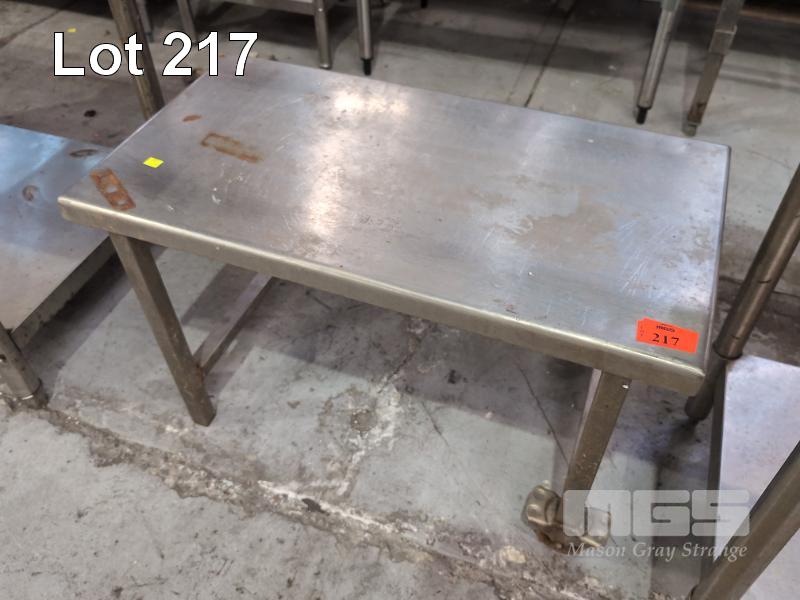 STAINLESS STEEL ROLLING BENCH TABLE (CASTORS ON ONE END). 835 X 440 X 520 MM (W D H).