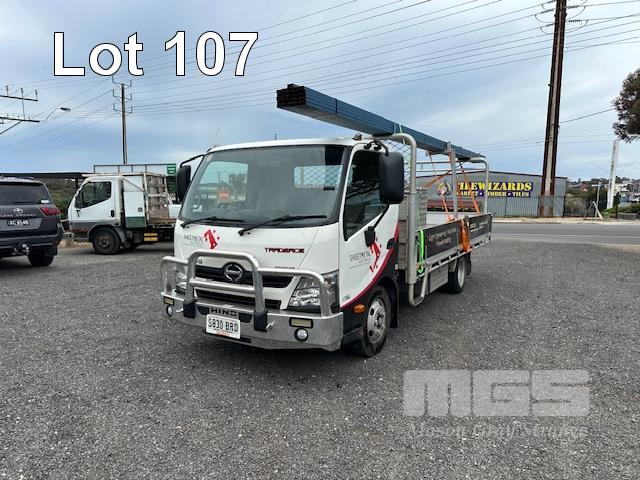 2017 TRAY TOP TRUCK, 4x2, HINO REG: S830 BRD VIN: JHHUC53H60K021538 MOD: 300, XZU710R ODO: 27,234kms ALLOY TRAY, LADDER RACK, TURBO DIESEL, AUTOMATIC TRANSMISSION