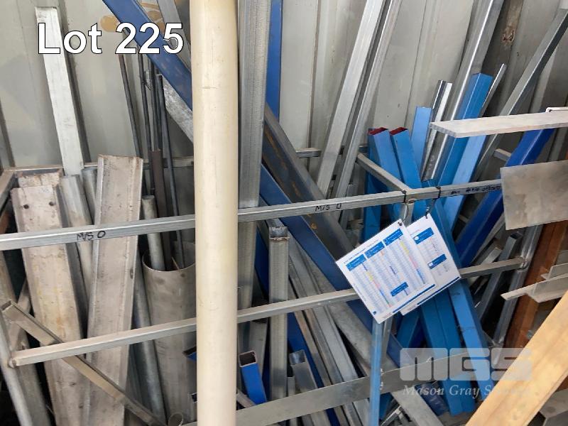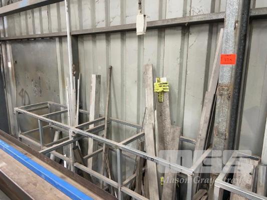2 x OFFCUT VERTICAL RACKS & ASSORTED OFFCUT STEEL, GALV,, BLUE, STAINLESS STEEL, ETC