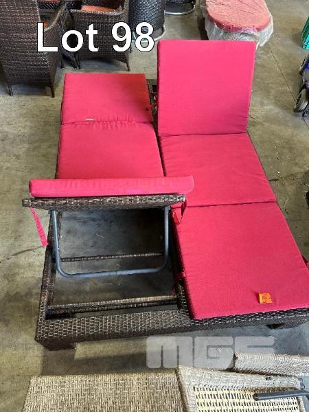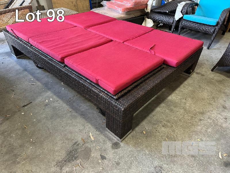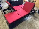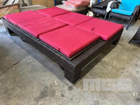 DOUBLE DAY BED, BROWN WICKER STYLE PVC, 2200 x 1500mm, RED CUSHION