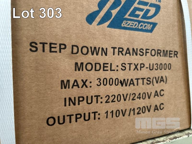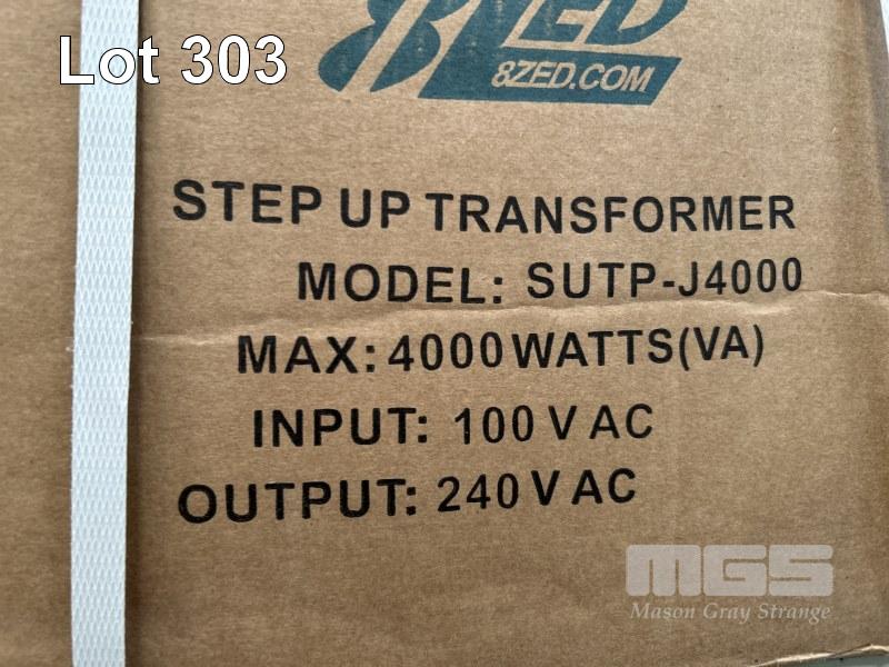 STEP UP & STEP DOWN TRANSFORMERS & VOLTAGE CONVERTERS, 8ZED INC 1 @ 4000w, 100V AC TO 240V AC 1 @ 3000w, 240V TO 120V 1 @ 1000w, 240V TO 120V, 1 @ 1000w, 120V AC TO 240V AC & 2 @ 100w, 240V AC TO 120V AC AS NEW IN BOX 1 x SHELF