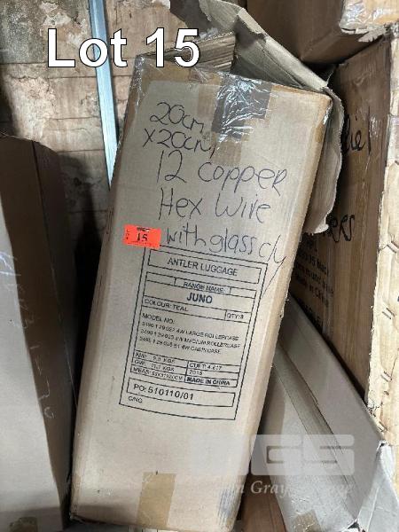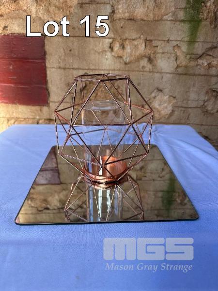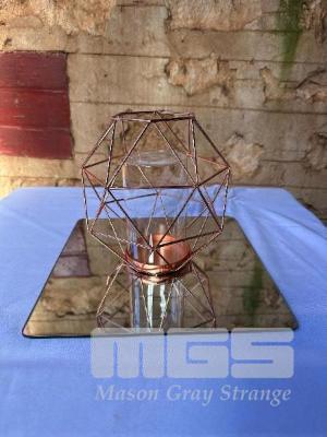 12 x COPPER WIRE, HEX SHAPE, WIRE FRAME WITH GLASS INSERT, 20cm
