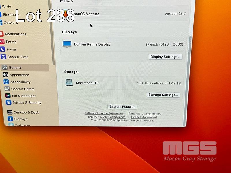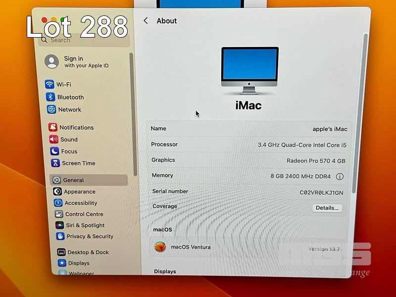 APPLE iMAC (A1419), CORE i5 7500 (7TH GEN) @ 3.4GHz, 8GB DDR4 RAM, 1TB FUSION DRIVE, BUILT-IN 27" RETINA 5K DISPLAY (5120x2880), 4GB RADEON PRO 570 VIDEO, Wi-Fi, BLUETOOTH, MAC OS 13 INSTALLED, KEYBOARD & MOUSE S/N:C02VR0LKJ1GN