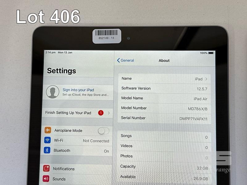 4 x APPLE iPAD AIR, 32GB, Wi-Fi, SPACE GREY, MODEL MD786X/B, A1474 (NOTE: 3 x SWOLLEN BATTERIES, 1 x DEAD) (NO CABLES, NO CHARGERS) S/N:DMPP71VAFK11, DMPP7H38FK11, DMPP7KV7FK11, DMPP7CF4FK11