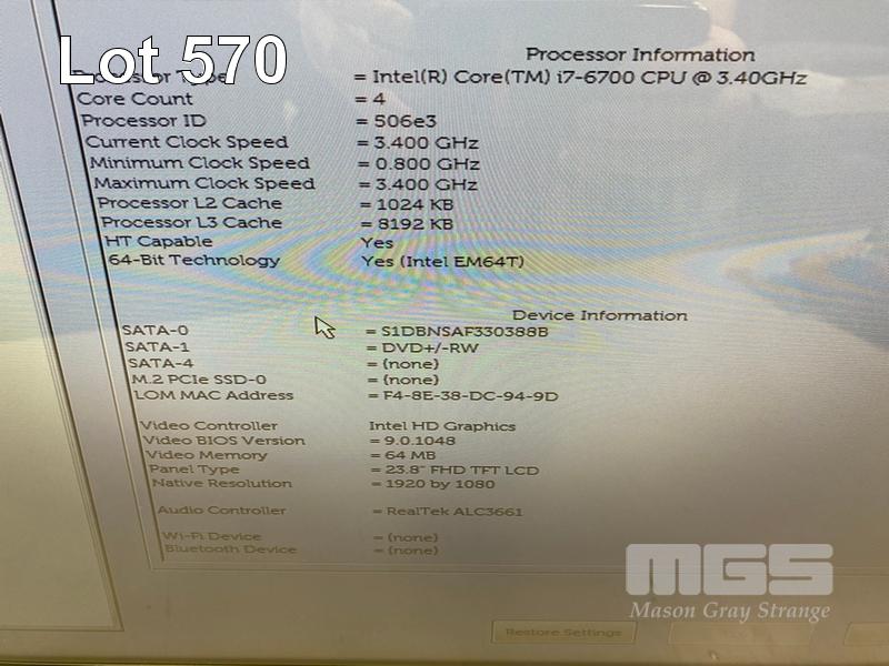 ALL-IN-ONE PC, DELL OPTIPLEX 7440, CORE i7 6700 (6TH GEN) @ 3.4GHz, 8GB DDR4 RAM, 250GB SSD, DVD-RW, INBUILT 23.8" FHD TOUCHSCREEN (1920x1080), INTEL HD GRAPHICS, WEBCAM, 8 x USB, WINDOWS 10 HOME INSTALLED, KEYBOARD & MOUSE S/N:GWR2TF2