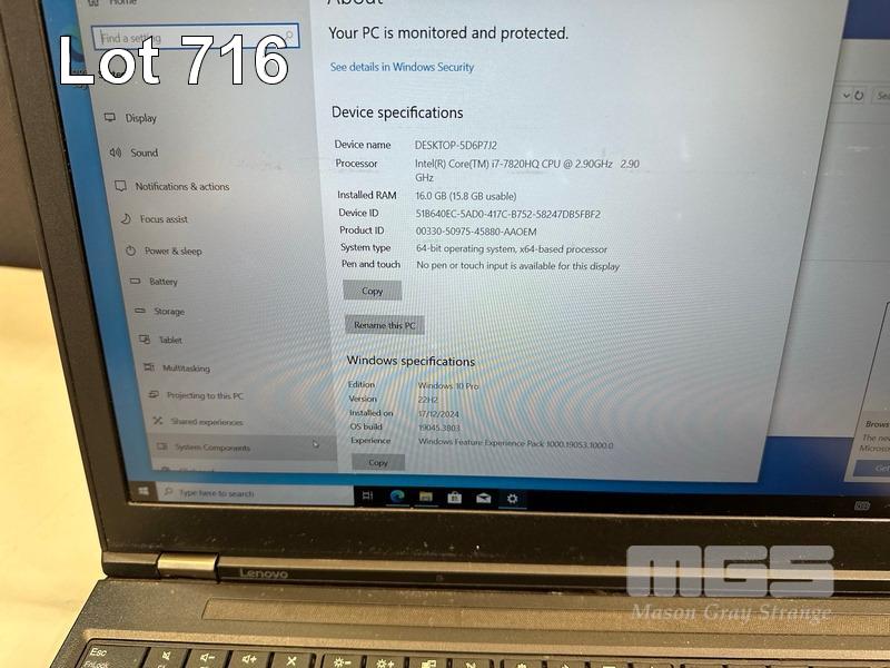 LAPTOP, LENOVO THINKPAD P51 MOBILE WORKSTATION, TYPE 20HJ, CORE i7 7820HQ (7TH GEN) @ 2.9GHz, 16GB DDR4 RAM, 512GB NVMe M.2 SSD, 15.6" WIDESCREEN (1920x1080), 4GB NVIDIA QUADRO M2200 VIDEO, Wi-Fi, BLUETOOTH, WINDOWS 10 PRO INSTALLED (NO POWER SUPPLY) (NOTE: MARKS, SPOTS & LINE ON SCREEN, DAMAGED USB PORT, SCRATCHES ON CASING, KEYBOARD / TOUCHPAD FAULT) S/N:PF0Y2M0H