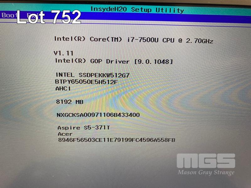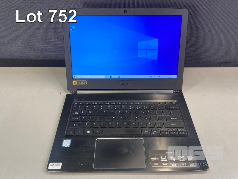 LAPTOP, ACER ASPIRE S13 S5-371T, CORE i7 7500U (7TH GEN) @ 2.7GHz, 8GB DDR4 RAM, 512GB NVMe M.2 SSD, 13.3" TOUCHSCREEN (1920x1080), Wi-Fi, BLUETOOTH, WINDOWS 10 HOME INSTALLED & POWER SUPPLY (NOTE: MISSING SCREEN HINGE COVERS, MARKS ON SCREEN) S/N:NXGCKSA00971106B433400