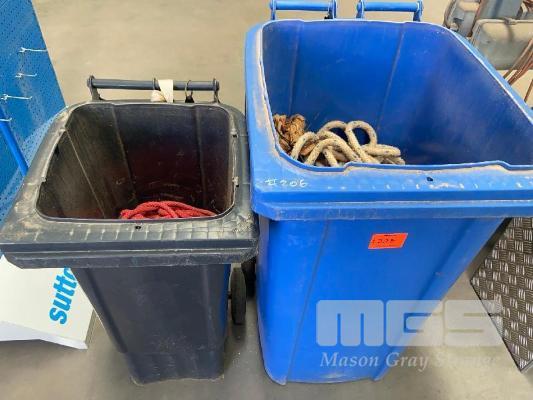 2 x WASTE MOBILE BINS, 120 & 240 LITRE & ROPE