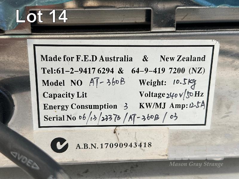 COMMERCIAL TOASTER, FED MOD: AT-360B 240V, 15 AMP PLUG AS NEW