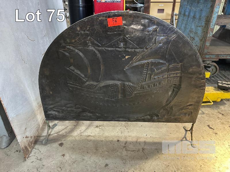 ANTIQUE BRASS SHIP PLAQUE ON FEET, 900 x 700mm