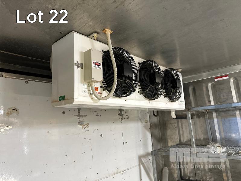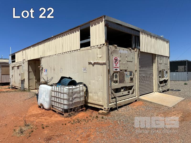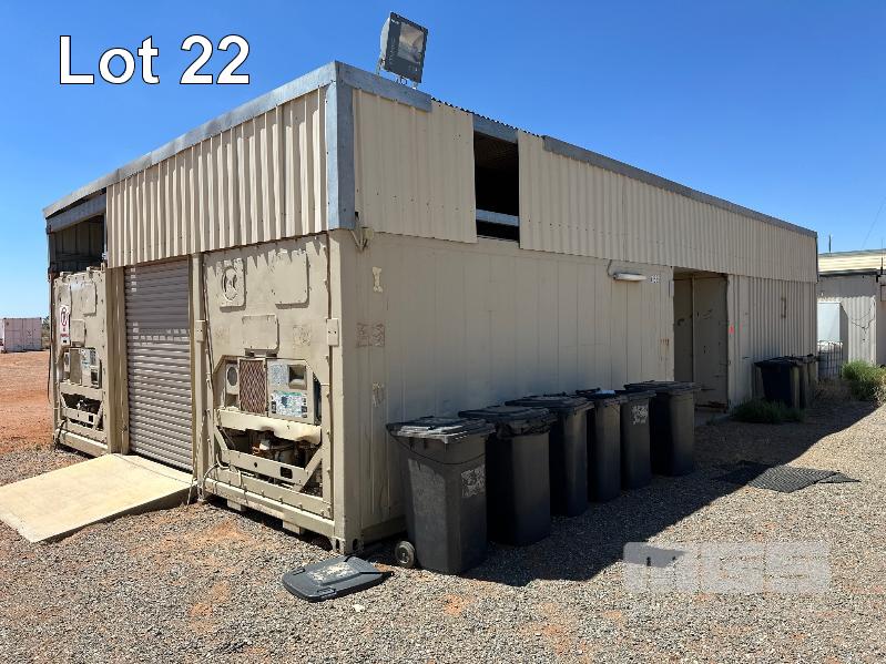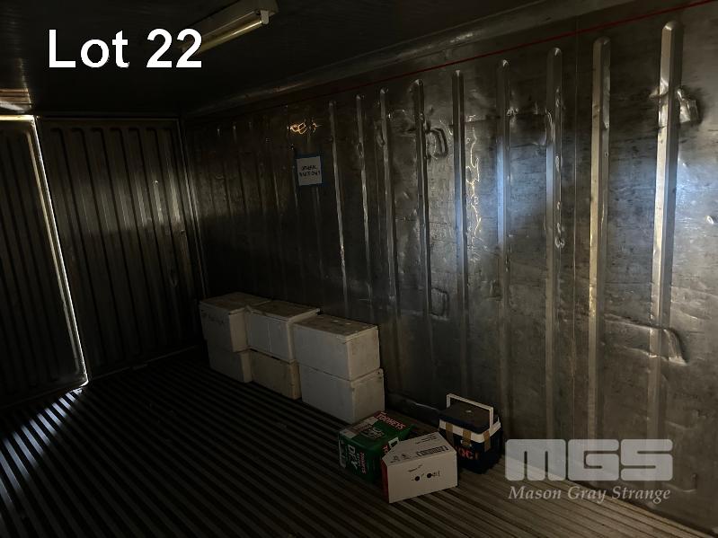 COLD STORE AREA COMPRISING 4 x REFRIGERATED CONTAINERS, EACH 20' ALL WITH SIDE DOOR ACCESS, 1 x OPERATING COLD STORE & RACKING, 1 x OPERATING FREEZING & RACKING, (NOT IN USE) RECENT FITTED ROOF MOUNT TRIDENT REFRIGERATION PLANT, 1 x STORAGE UNIT ONLY (INSULATED CONTAINER), 1 x GENERAL GOODS, STORE, (WALL MOUNT A/C OPERATING) & RACKING WITH TUBE STEEL ANNEX COVER OVER ALL 4 CONTAINERS (BUYER TO DISMANTLE)