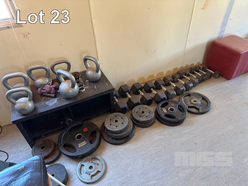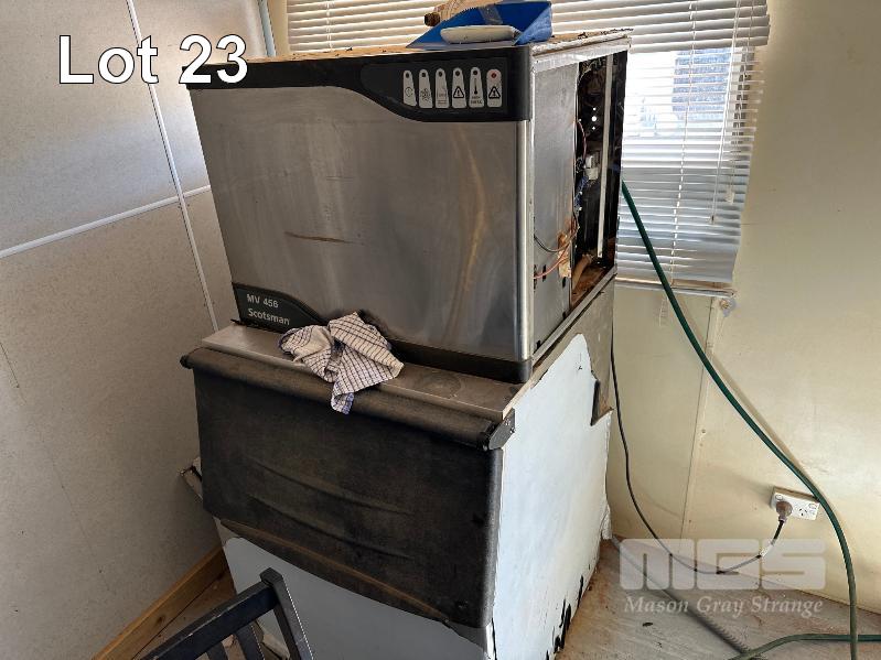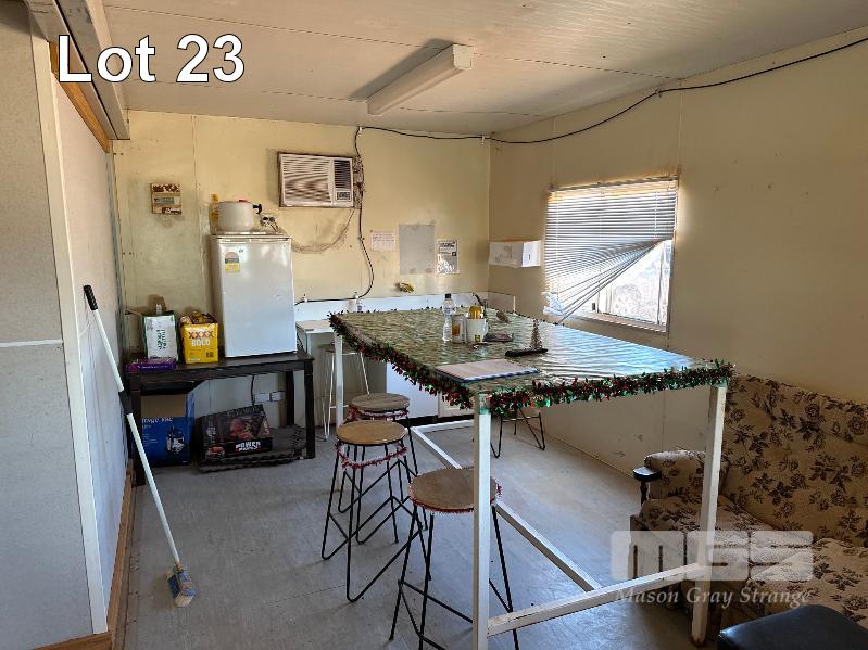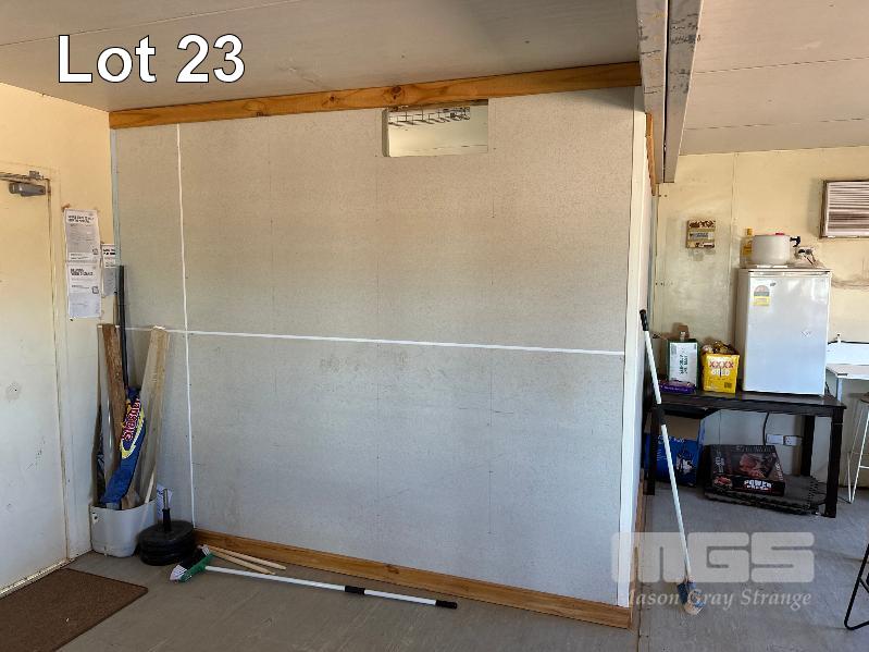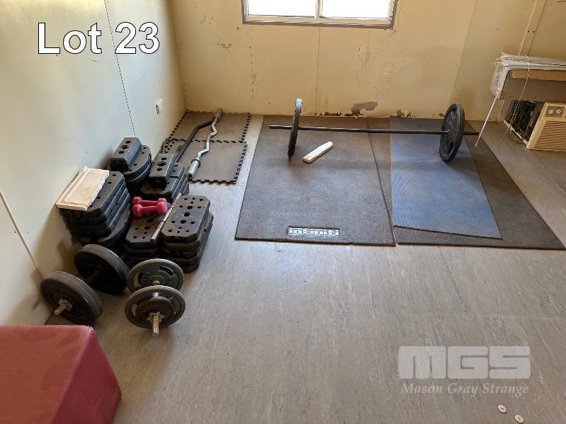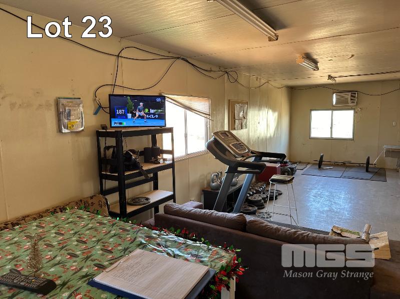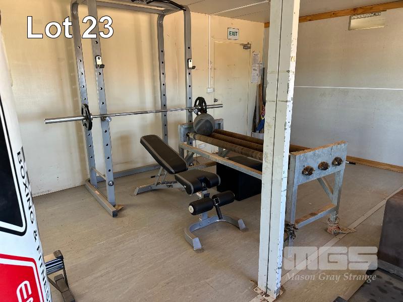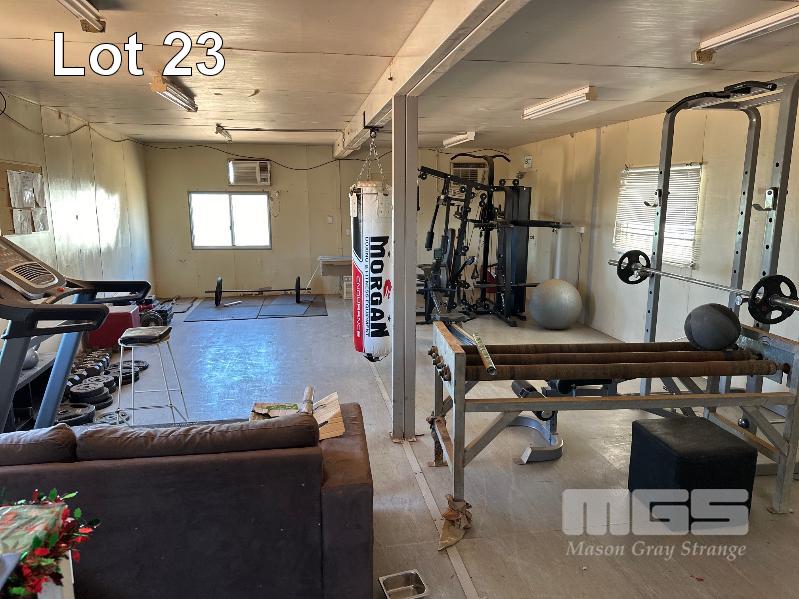 GYM/ACTIVITIES BUILDING (INCLUDES ICE STORE) COMPRISING 2 x 12 x 3m OPEN PLAN BUILDINGS, BOLT TOGETHER FRAMES SEPARATE ICE STORE ROOM WITH SCOTSMAN MV456 ICE MACHINE, EXQUISITE CHEST FREEZER & GYM EQUIPMENT INCLUDING TREADMILL, MULTI GYM, BOXING BAG, CONCEPT ROWER, SMITH MACHINE, KITCHENETTE, BENCH LOUNGES, CTV, 1 x SPLIT SYSTEM A/C & 3 x WALL A/C'S
