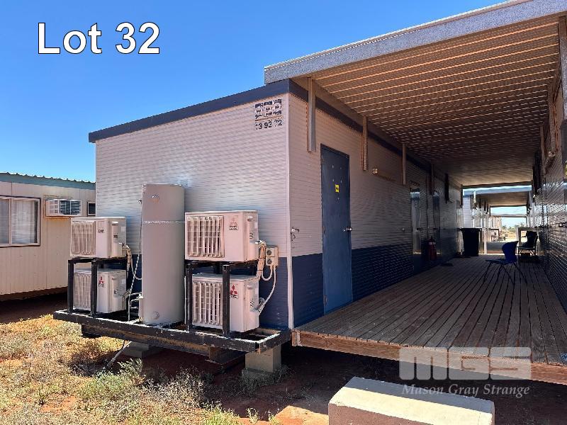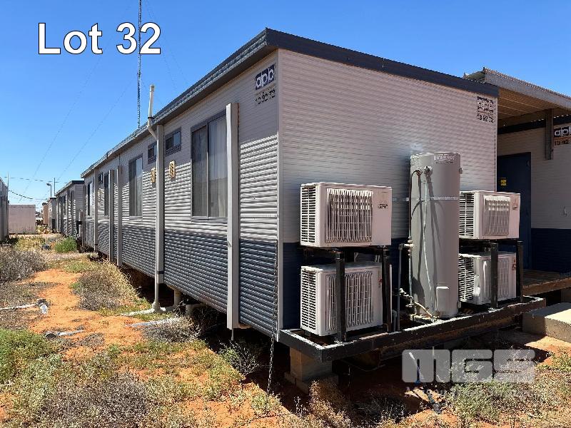 4 BED & ENSUITE TRANSPORTABLE, AUST PORTABLE BUILDINGS (APB) 14.5 x 3.3m & END A/C RACK (600mm) EACH BED, FRIDGE, CUPBOARD, CTV, DESK, 4 x SPLIT S/C SYSTEMS WITH ANNEXE