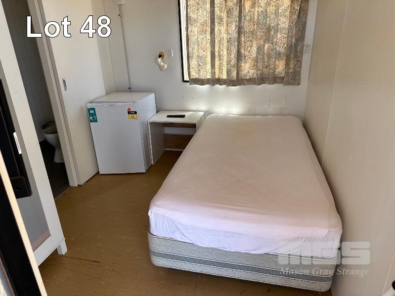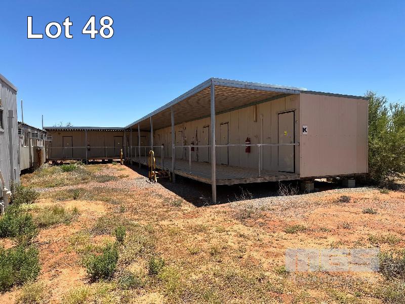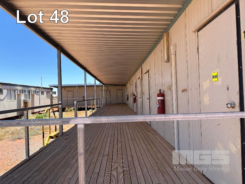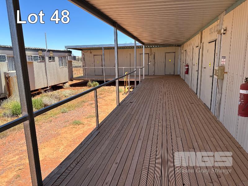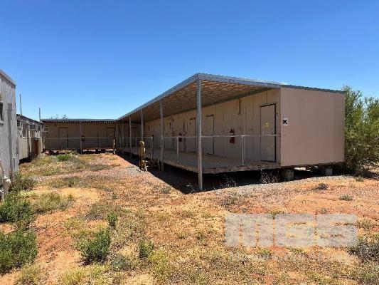 ACCOMMODATION BLOCK, AUSCO COMPRISING 3 x BUILDINGS IN A L-SHAPE FORMAT 10 x ROOMS TOTAL EACH WITH ENSUITE LARGE L-SHAPE VERANDAH PINE DECKING MOST WITH BEDS, CTV & CUPBOARD, 7 x FRIDGES & KELVINATOR SPLIT SYSTEM A/C'S