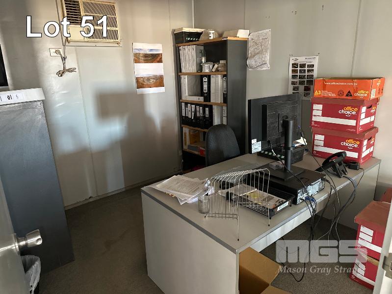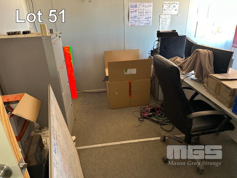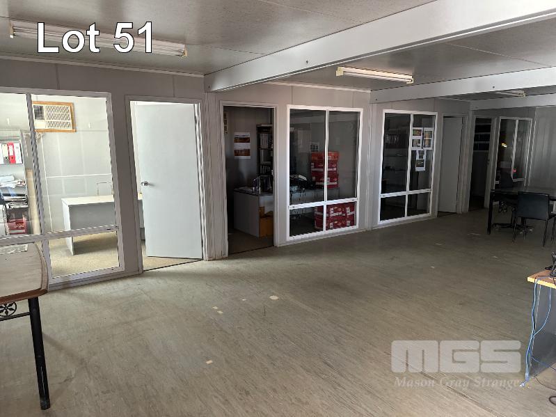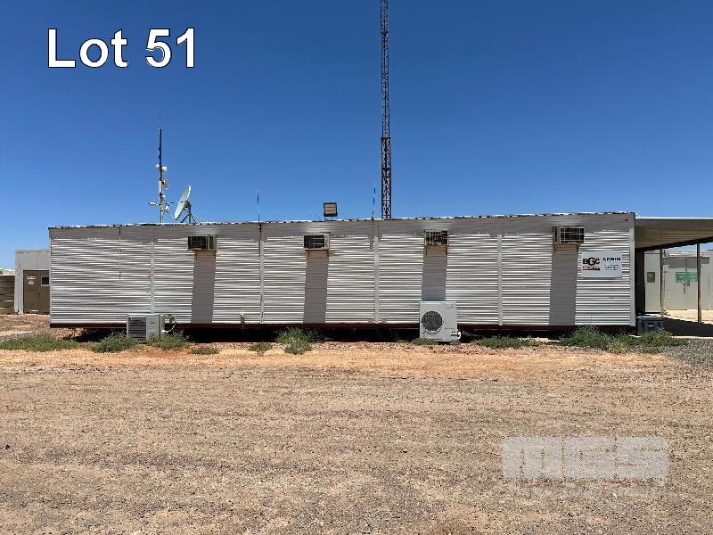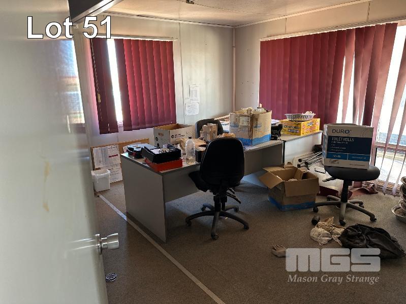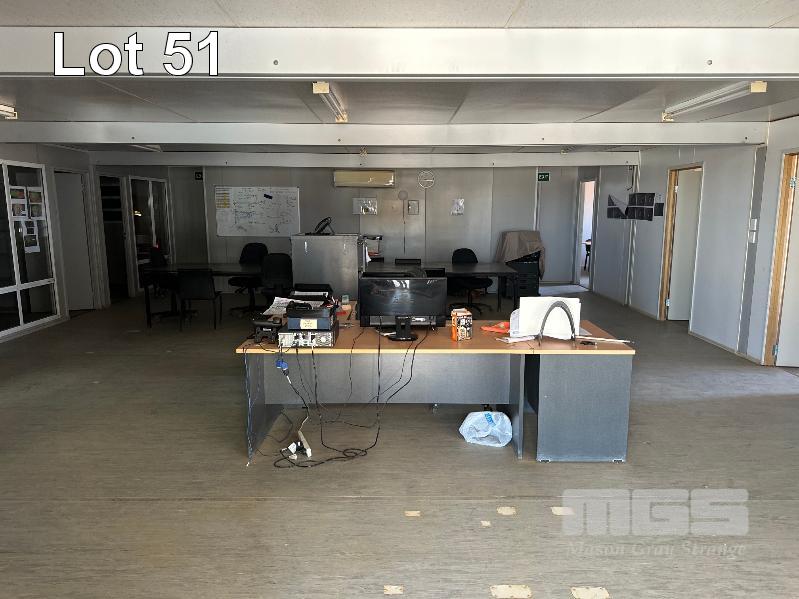 SERVICE AREA OFFICE MODULE 4 x UNITS EACH 12 x 3m, OPEN PLAN WITH VERANDAH 7 x OUTER OFFICES, OPEN PLAN CENTRE, ABLUTION, MALE/FEMALE & KITCHENETTE, MEETING ROOM INCLUDES SPLIT SYSTEM & WALL A/C'S. COMS, RACKMOUNT SERVER, RECEIVER, BOARDROOM TABLE, DESKS, CHAIRS & STORAGE