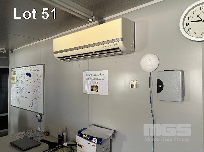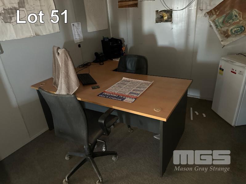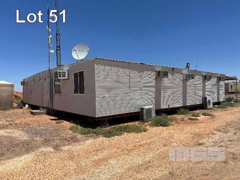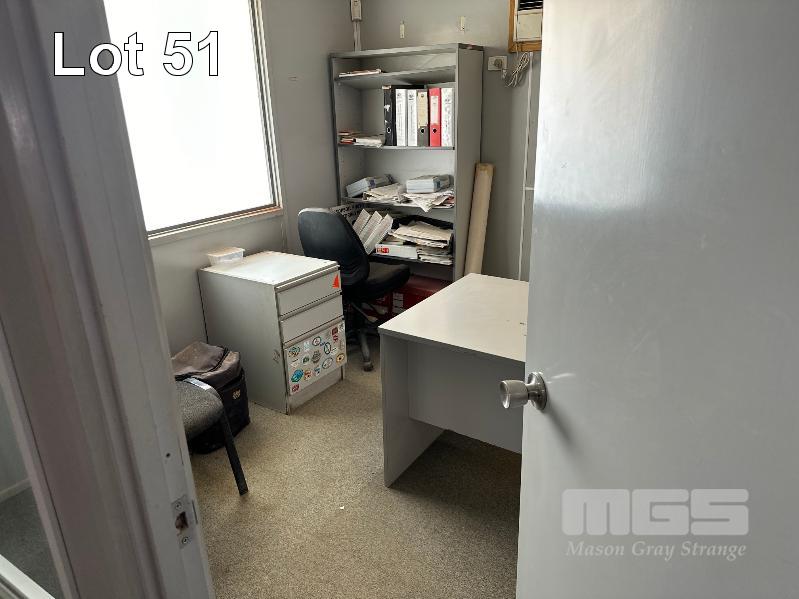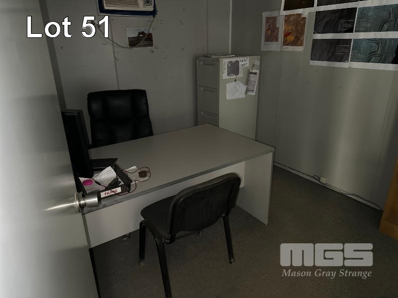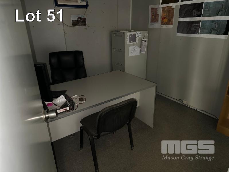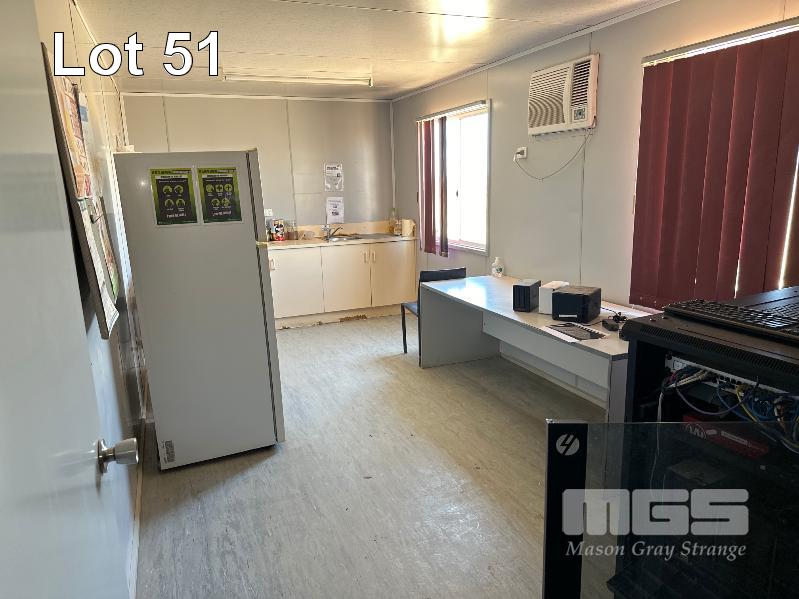 SERVICE AREA OFFICE MODULE 4 x UNITS EACH 12 x 3m, OPEN PLAN WITH VERANDAH 7 x OUTER OFFICES, OPEN PLAN CENTRE, ABLUTION, MALE/FEMALE & KITCHENETTE, MEETING ROOM INCLUDES SPLIT SYSTEM & WALL A/C'S. COMS, RACKMOUNT SERVER, RECEIVER, BOARDROOM TABLE, DESKS, CHAIRS & STORAGE