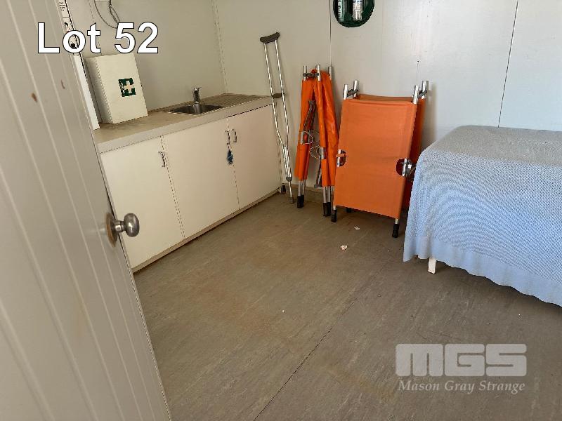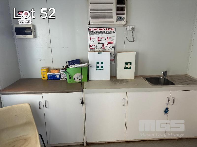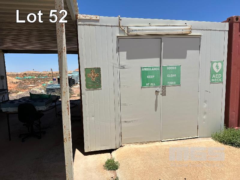TRANSPORTABLE FIRST AID ROOM, PORTASTRUCT 6 x 3m PA DOOR, REAR DOUBLE DOOR STRETCHER ACCESS, FIRST AID BED, CABINET, STRETCHERS, ETC