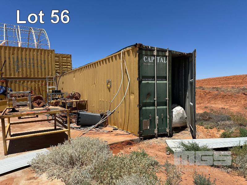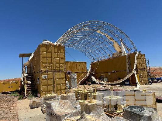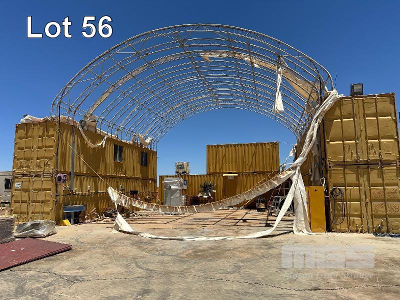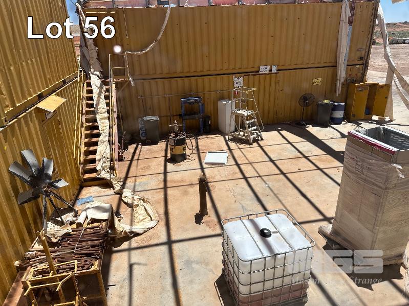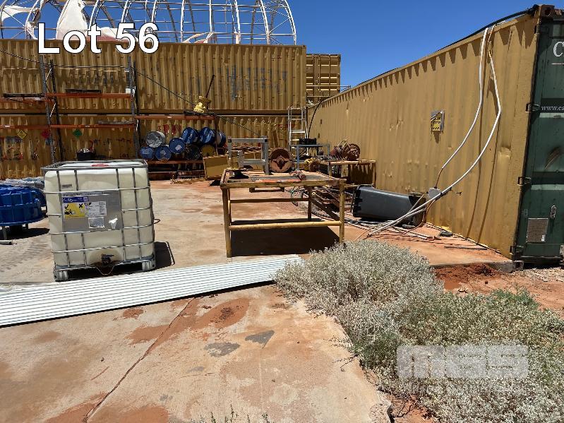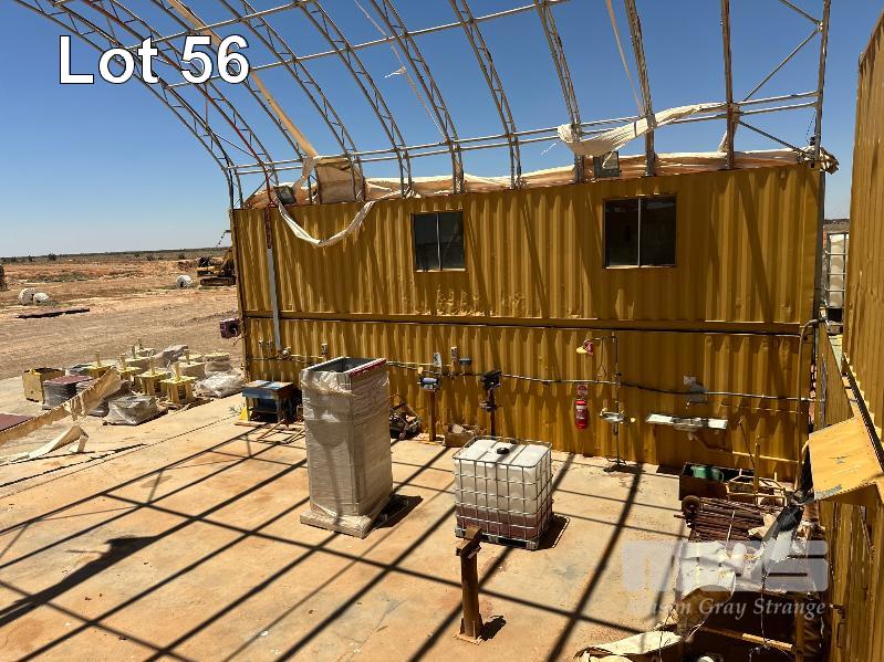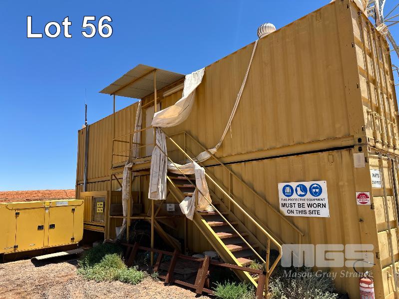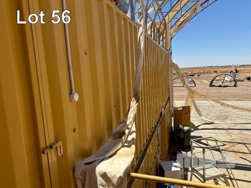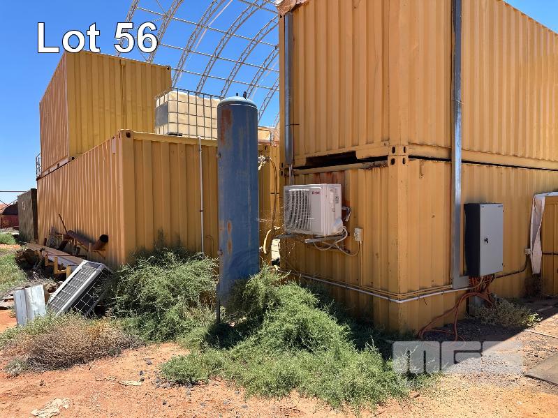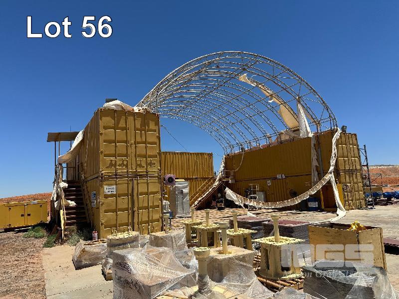 CONTAINERISED IGLOO WORKSHOP AREA COMPRISING 6 x 40' SHIPPING CONTAINERS 4 = WORKSHOP CONVERTED CONTAINERS 1 = STORE 1 = OFFICE 1 x STORAGE CONTAINER, 20' & WASTE OIL OPEN CONTAINER, 40' & TANK TO INCLUDE 60KVA DIESEL GENSET, POWER GPO'S IGLOO ROOF STRUCTURE (COVER DAMAGED) (PLANT AS PER PHOTOS)