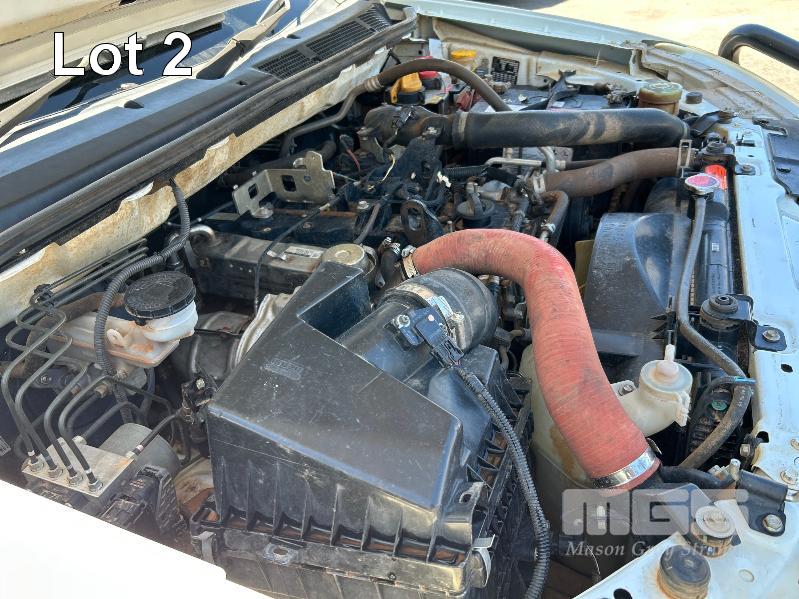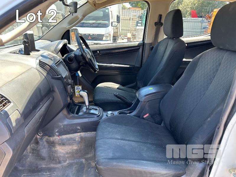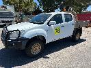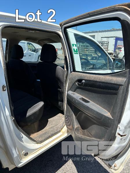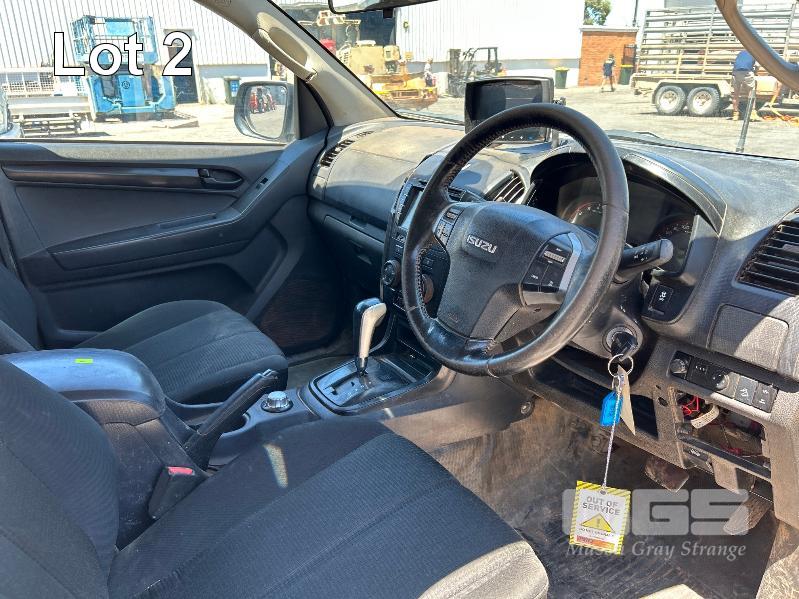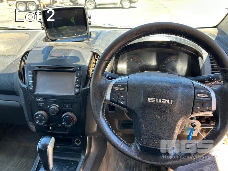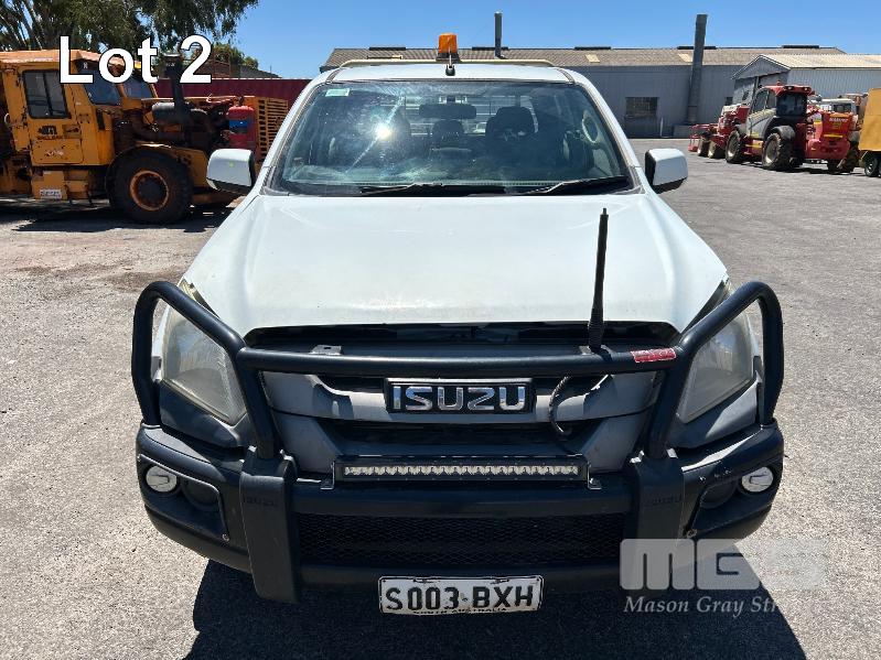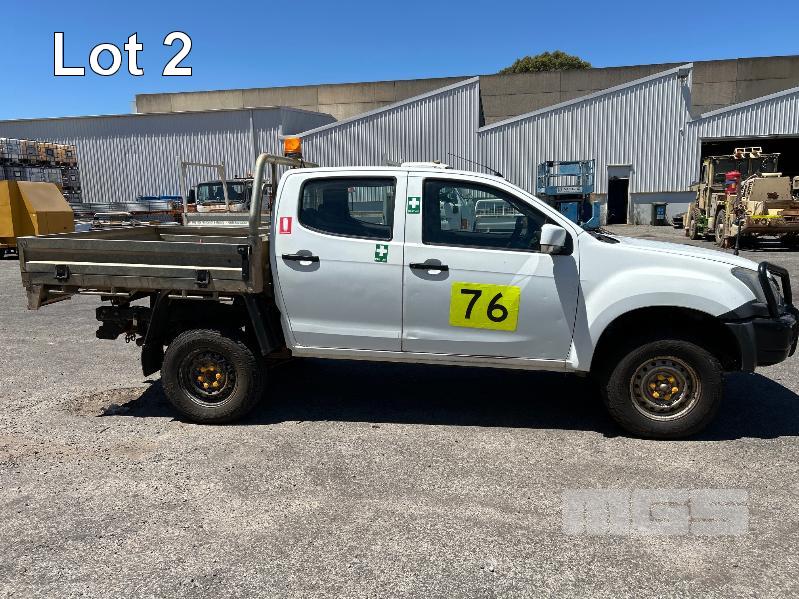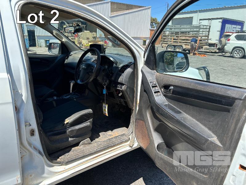2018 ISUZU D-MAX DUAL CAB TRAY TOP UTILITY 4x4 REG: S003 BXH (SA) VIN: MPATFS85JJT007430 ENG: SR4179 ODO: 137,409kms SHOWING PLANT NO: LV76 4 CYLINDER TURBO DIESEL, AUTOMATIC TRANSMISSION, WHITE DUCO, 4 DOORS, 5 SEAT, 4x4 ABS, AIR BAG, AIR CON, BLUETOOTH, BULL BAR, CARGO BARRIER, CD PLAYER, CENTRAL LOCKING, CRUISE CONTROL, DECALS, IMMOBILISER, NUDGE BAR, POWER STEERING, POWER WINDOWS, SPARE WHEEL, SPOT LIGHTS, STEEL TRAY, WARNING LIGHTS, BATTERY ISOLATION SWITCHES KEY #53 (WITH 1 KEY/S, WITH OWNER'S MANUAL, WITH SERVICE BOOKS)