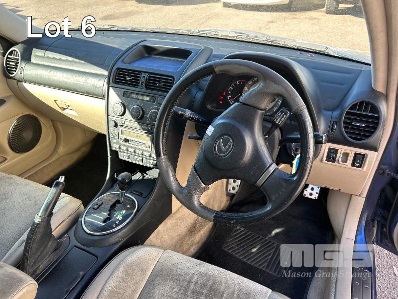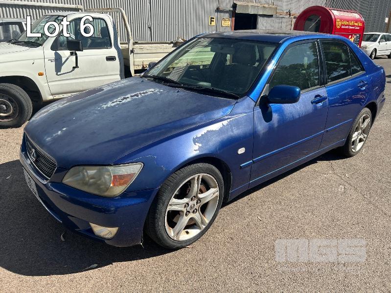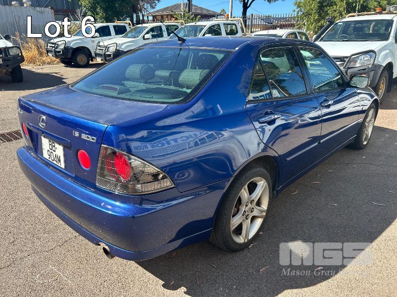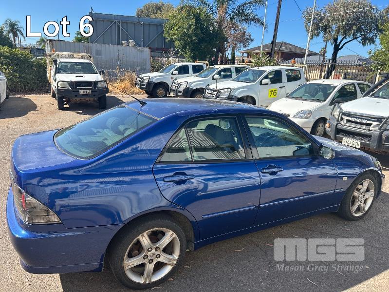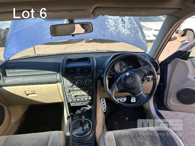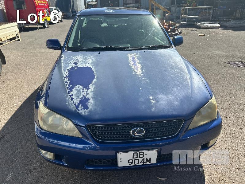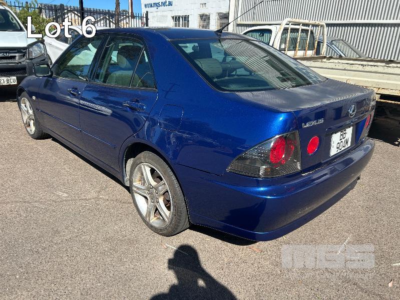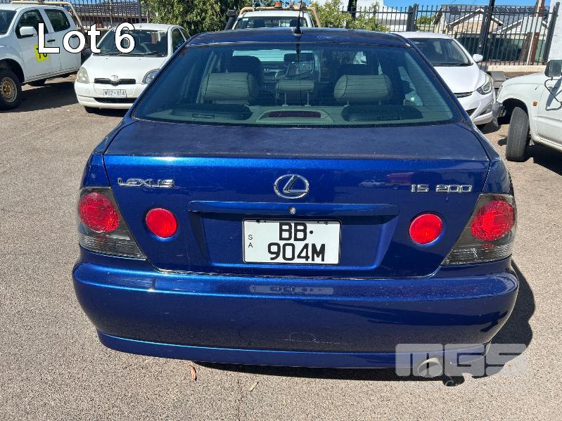 2002 TOYOTA LEXUS IS200 SEDAN REG: BB 804M (SA) VIN: JTDBS192600096150 ODO: 180,142kms SHOWING 4 CYLINDER, 2.0 LTR PETROL, 4 SPEED AUTOMATIC TRANSMISSION, BLUE DUCO, 4 DOORS, 5 SEAT, ABS, AIR BAG, AIR CON, ALLOY WHEELS, CD PLAYER, CENTRAL LOCKING, CRUISE CONTROL, POWER STEERING, POWER WINDOWS, SPARE WHEEL, SUNROOF, BONNET AND ROOF PAINT HEAVILY OXIDISED KEY #36 (NO PAPERS, WITH 2 KEY/S, WITH OWNER'S MANUAL, WITH SERVICE BOOKS)