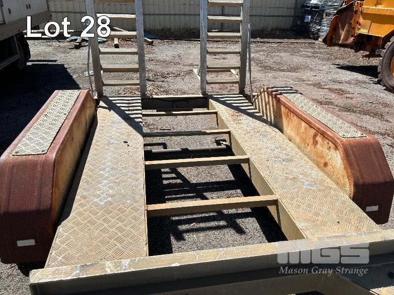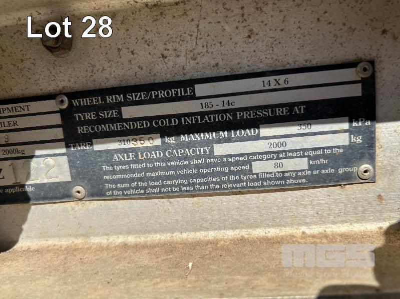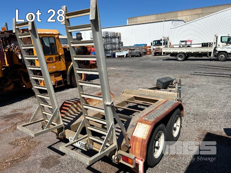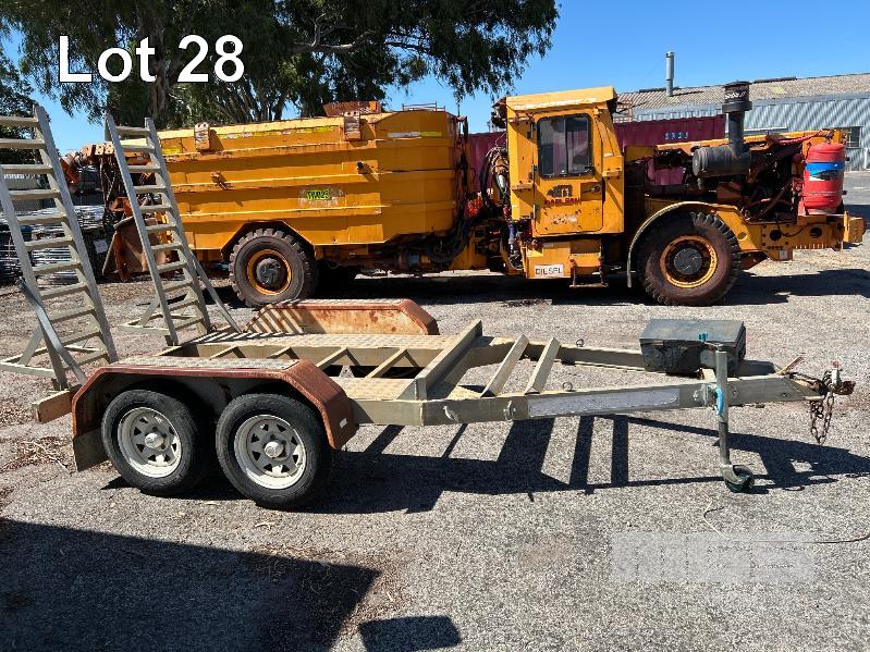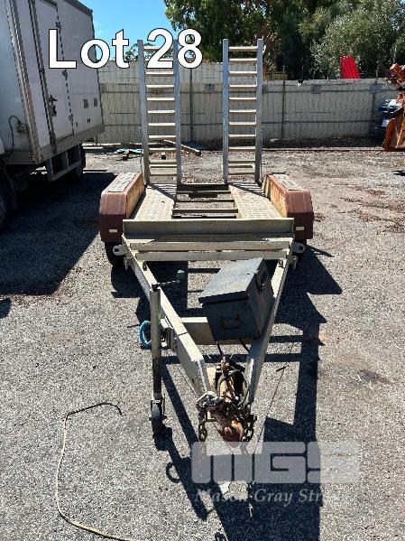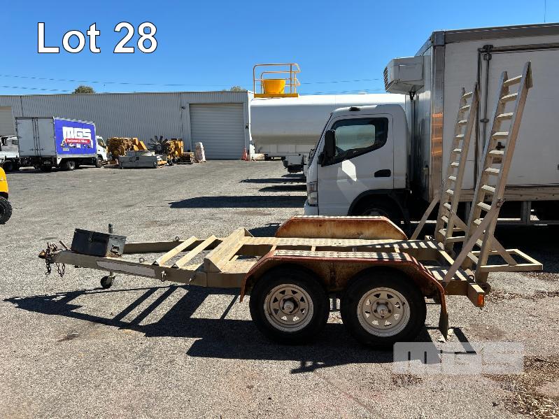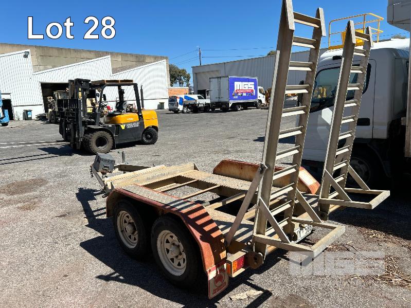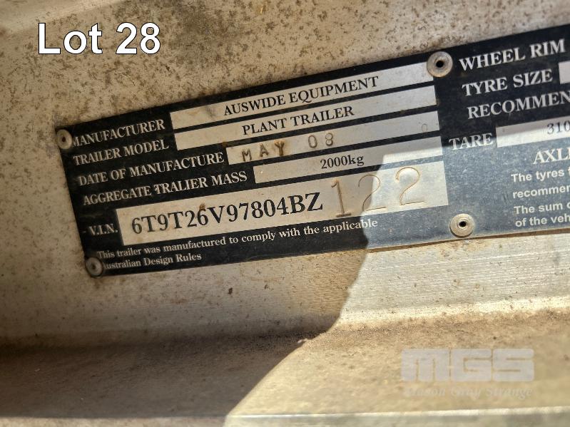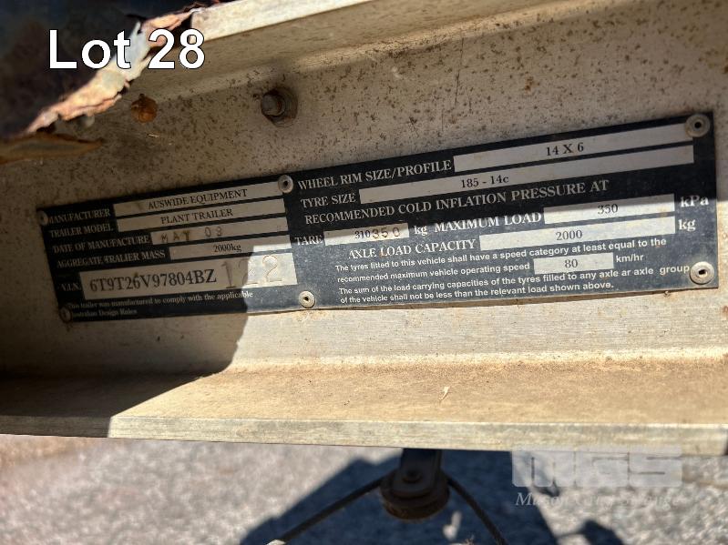 2008 AUSWIDE EQUIPMENT TANDEM AXLE ALLOY PLANT TRAILER REG: VYV 588 (SA) PLANT NO: 6T9T26V97804BZ122 ATM: 2,000kg SIZE: 2130 x 1360mm BALL HITCH, JOCKY WHEEL, BRAKES HINGED REAR LOAD RAMPS