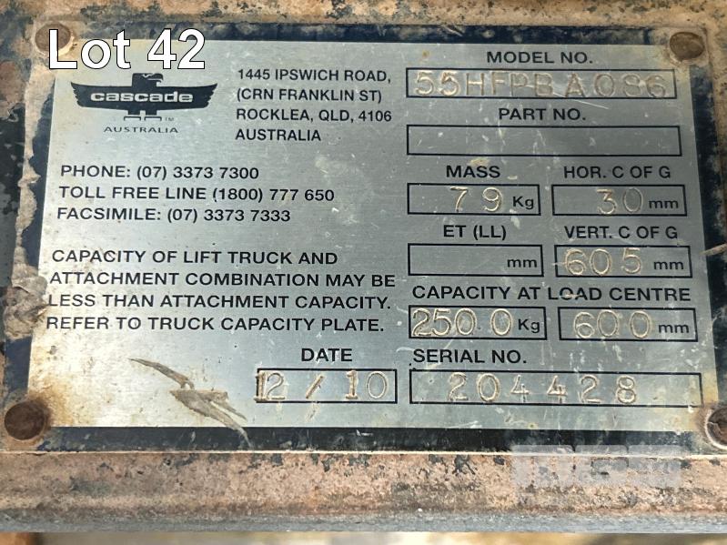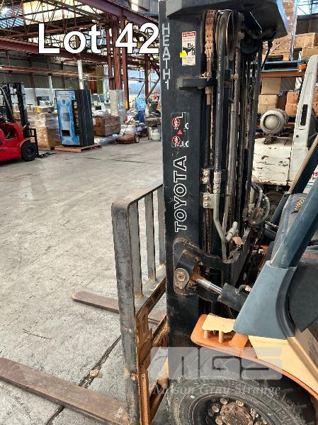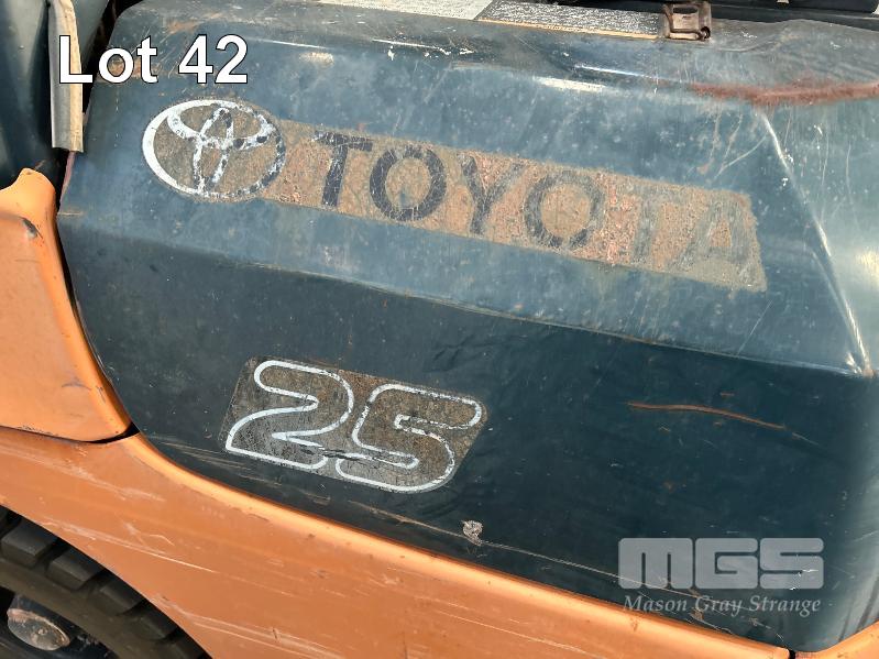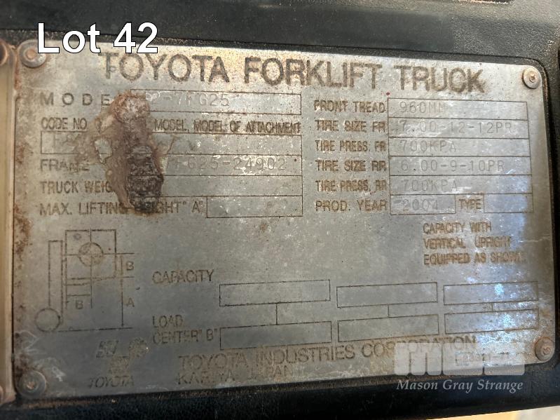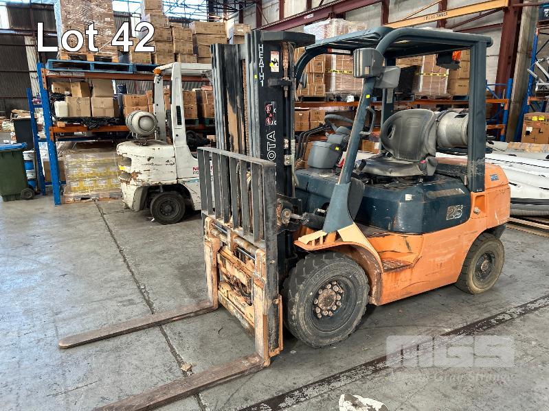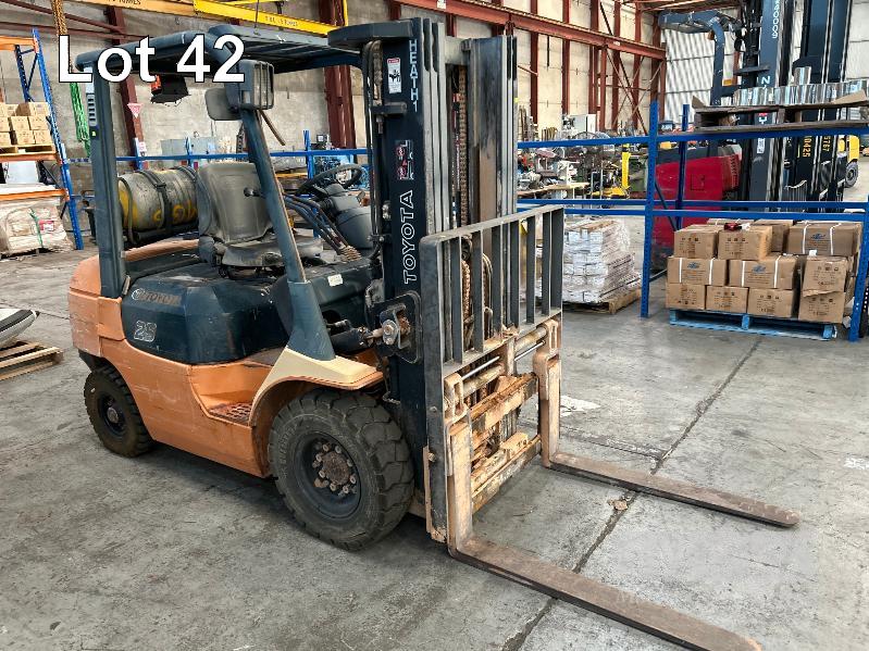 2004 TOYOTA FORKLIFT 2.5 TONNE MODEL: 42-7FG25 S/N: 7F-G25-24902 4 CYLINDER LPG ENGINE 3 STAGE CONTAINER MAST TYNE SHIFT, SOLID TYRES 1 x KEY KEY #44